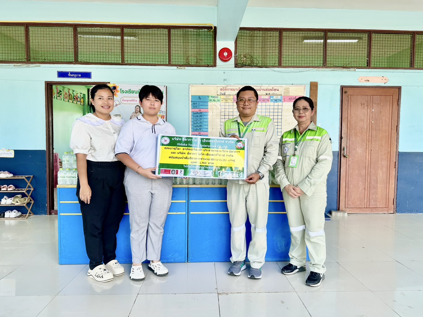 วันที่ 11 กันยายน 2568 บริษัท ฮีดากาโยโก เอ็นเตอร์ไพรส์ จำกัด สาขาอยุธยา โดยรองผู้จัดการโรงงานและตัวแทนพนักงาน มอบน้ำดื่ม จำนวน 600 ขวด (50แพ็ค) มูลค่า 1,900 บาท เพื่อสนับสนุนให้กับโรงเรียนบ้านข่อยโทน ในการนำไปใช้ในกิจกรรมต่างๆให้กับนักเรียน