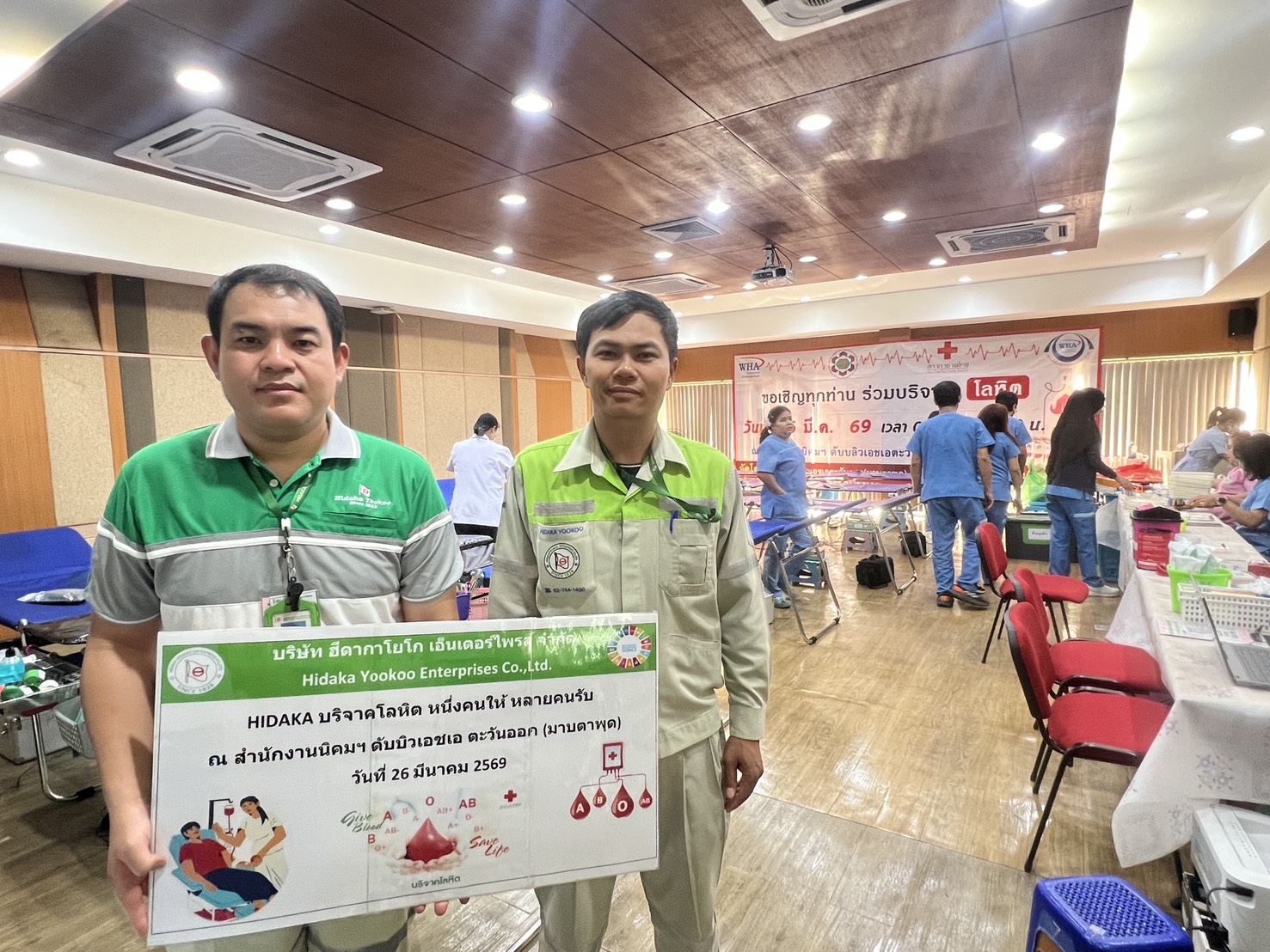22/08/25 บริษัทฮีดากาโยโก เอ็นเตอร์ไพรส์ จำกัด สาขาอยุธยา มอบน้ำดื่มจำนวน 480 ขวด และร่วมปริมาณโลหิต