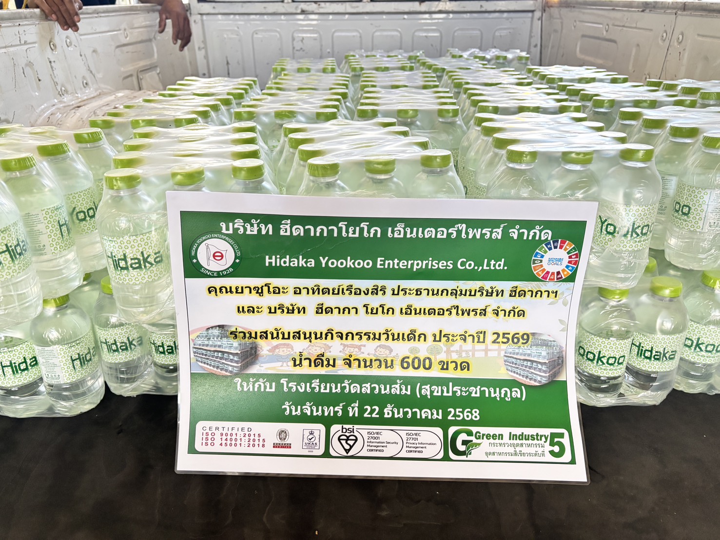วันที่ 22 ธันวาคม 2568 บริษัทฮีดากาโยโก เอ็นเตอร์ไพรส์ จำกัด สาขาสำโรง โดยรองผู้จัดการโรงงาน และตัวแทนพนักงานสาขาสำโรง มอบน้ำดื่ม HDK สนับสนุนกิจกรรมวันเด็กแห่งชาติ ประจำปี 2569 จำนวน 600 ขวด มูลค่า 1,900 บาท ให้กับ โรงเรียนวัดสวนส้ม (สุขประชานุกูล)