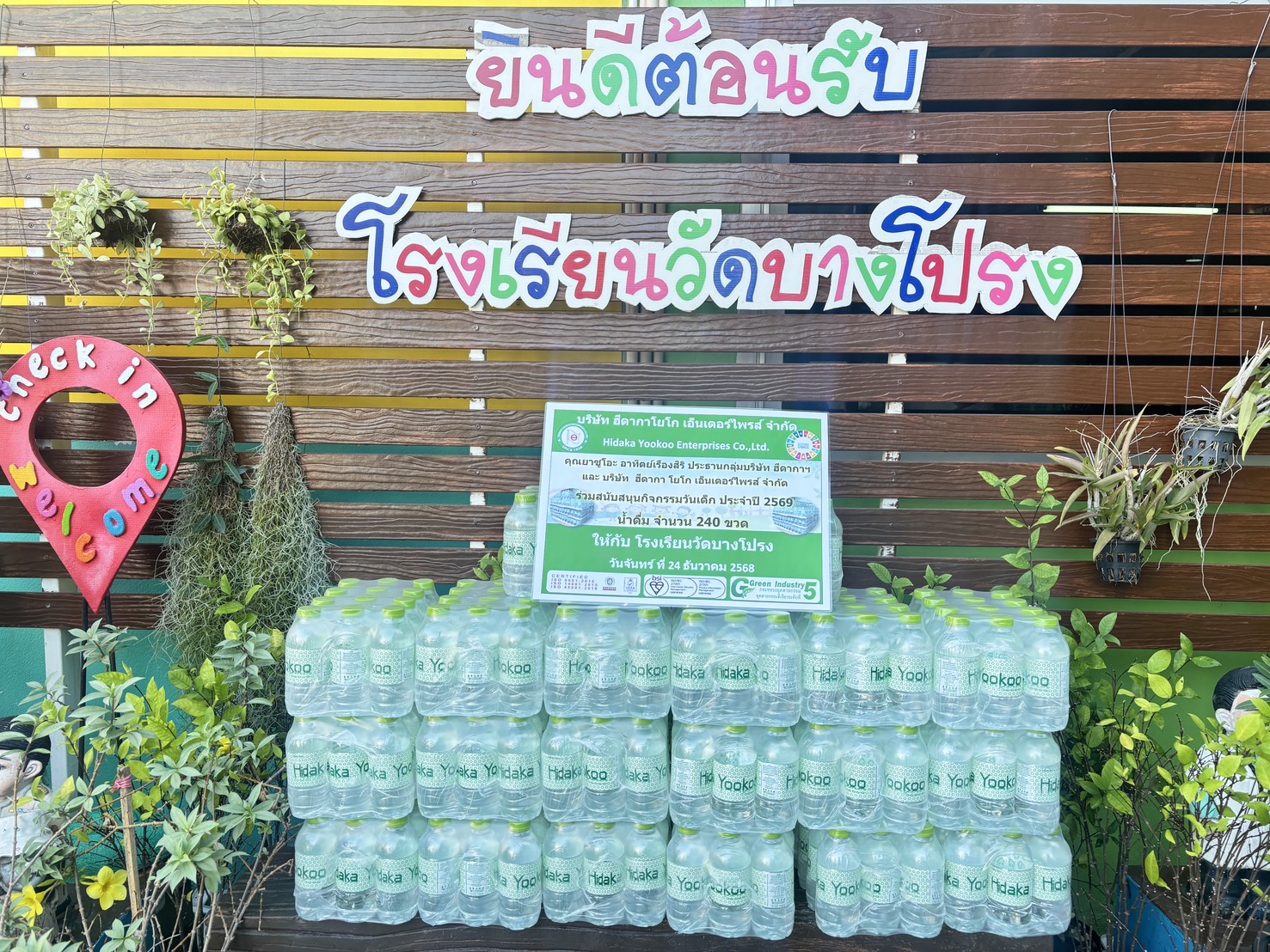 24/12/25 บริษัทฮีดากาโยโก เอ็นเตอร์ไพรส์ จำกัด สาขาสำโรง มอบน้ำดื่ม HDK สนับสนุนกิจกรรมวันเด็กแห่งชาติ ประจำปี 2569 ให้กับ โรงเรียนวัดบางโปรง