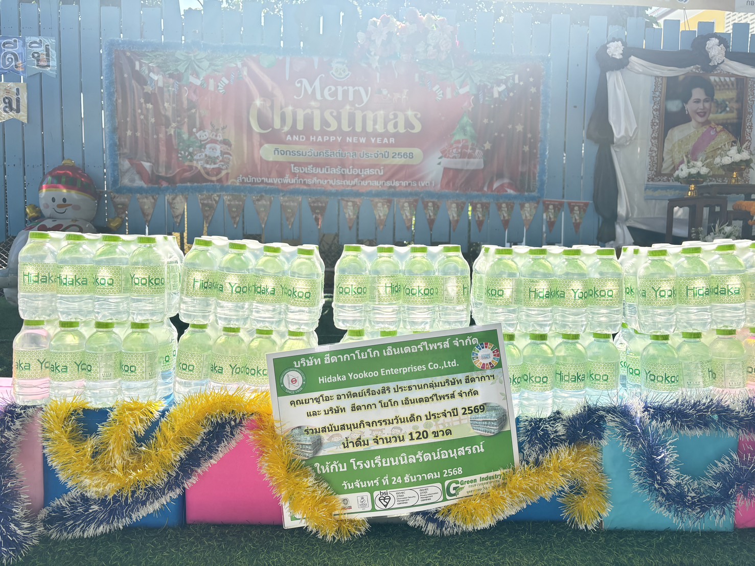วันที่ 24 ธันวาคม 2568 บริษัทฮีดากาโยโก เอ็นเตอร์ไพรส์ จำกัด สาขาสำโรง โดยตัวแทนพนักงาน มอบน้ำดื่ม HDK สนับสนุนกิจกรรมวันเด็กแห่งชาติ ประจำปี 2569 จำนวน 120 ขวด มูลค่า 380 บาท ให้กับ โรงเรียนนิลรัตน์อนุสรณ์