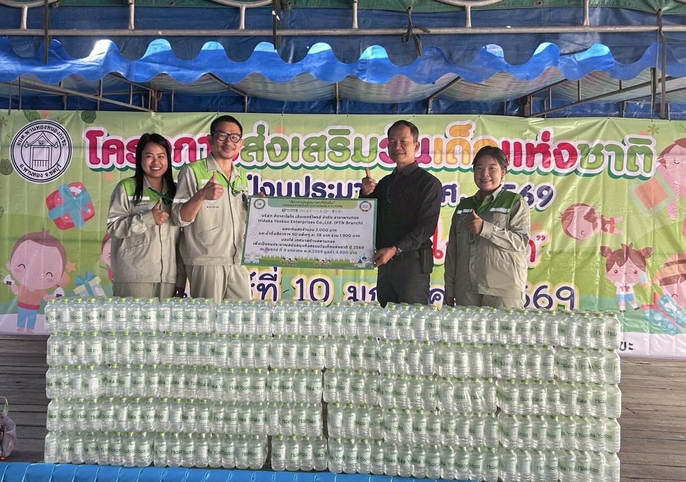 9/01/26 บริษัทฮีดากาโยโก เอ็นเตอร์ไพรส์ จำกัด สาขาพานทอง มอบเงินสดและน้ำดื่มฮีดากาฯ มอบให้กับทาง อบต.พานทองหนองกะขะ และเทศบาลตำบลพานทอง เพื่อสนับสนุนกิจกรรมวันเด็กแห่งชาติ ปี 2569
