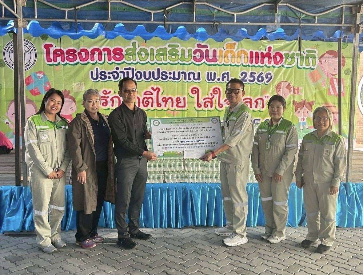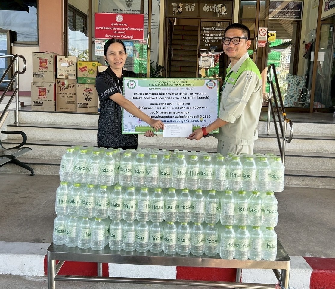 วันที่ 9 มกราคม 2569 บริษัทฮีดากาโยโก เอ็นเตอร์ไพรส์ จำกัด สาขาพานทอง รองผู้จัดการโรงงาน มอบเงินสดจำนวน 3,000 บาท และน้ำดื่มฮีดากาฯ 600 ขวด รวมเป็นจำนวนเงิน 1,900 บาท มอบให้กับทาง อบต.พานทองหนองกะขะ และเทศบาลตำบลพานทอง เพื่อสนับสนุนกิจกรรมวันเด็กแห่งชาติ ปี 2569